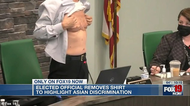 Lee Wong, an elected official in West Chester, Ohio & @USArmy veteran with 20-years of service, took his shirt off during a town hall meeting on Wednesday and revealed scars he received during his service. “Is this patriot enough?” he asked #StopAsianHate https://t.co/3nCwTlVGxD pic.twitter.com/0R1TX3MTtp