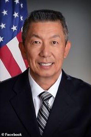 Lee Wong, 69, is a part of a Board of Trustees and decided to remove his shirt to show the results of being in the U.S. Army 20 years ago.