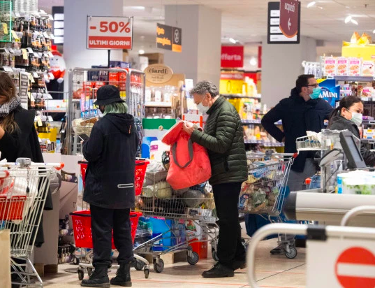 In the capital Rome, people were seen to be standing in long queues outside the shops so as to stock up the various essential commodities.