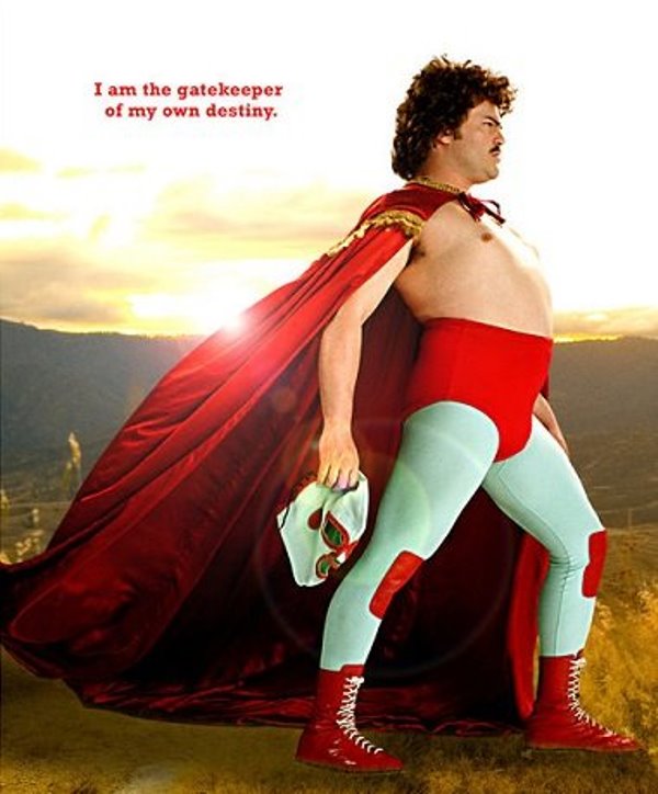 For those who can’t remember Nacho Libre, it is a comedy film written by Jerusha and Jared Hess and Mike White, and directed by Jared Hess.