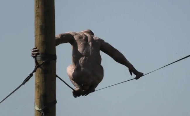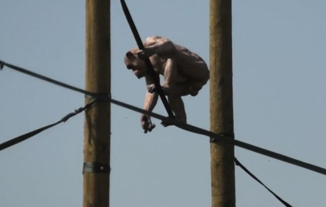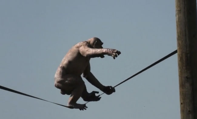 Watch the chimp’s circus-like balancing act