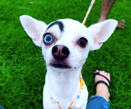 This Chihuahua is called Lucky, and it looks like Lucky is lucky to have some uniqueness.