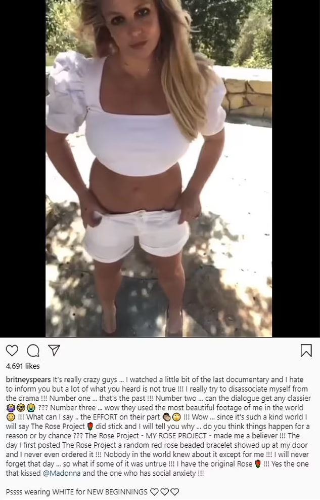 Britney Spears took to Instagram and said that the documentary, Controlling Britney Spears, had many factual errors.