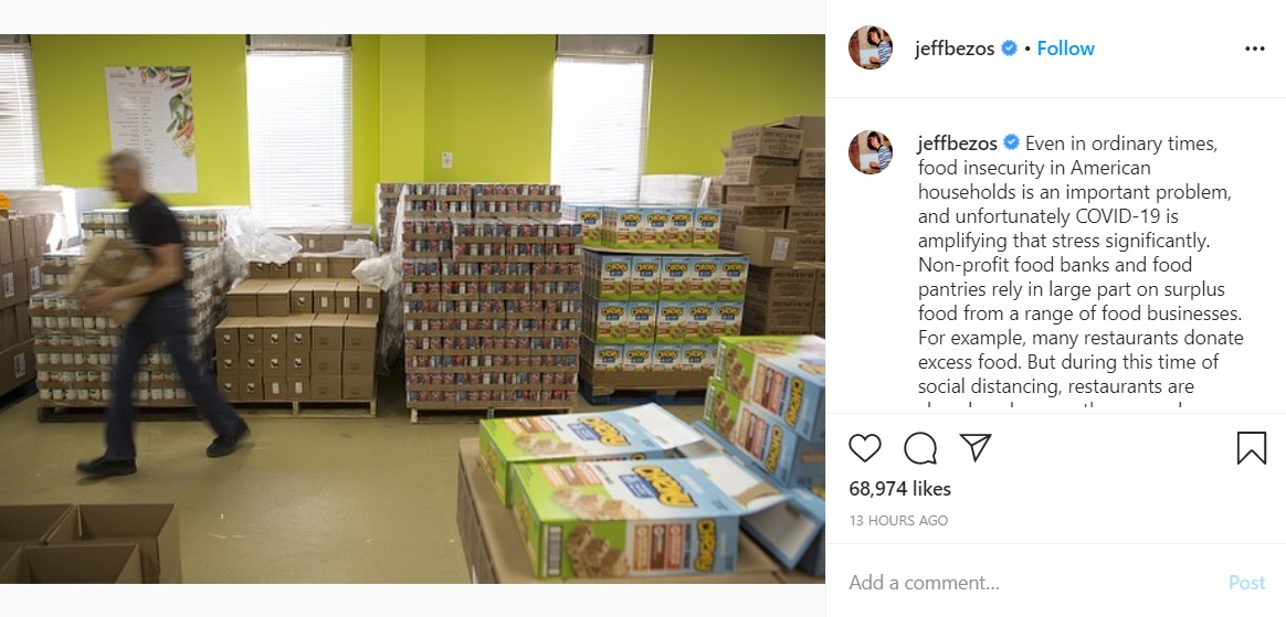 “Even in ordinary times, food insecurity in American households is an important problem, and unfortunately COVID-19 is amplifying that stress significantly,” the Amazon boss wrote.