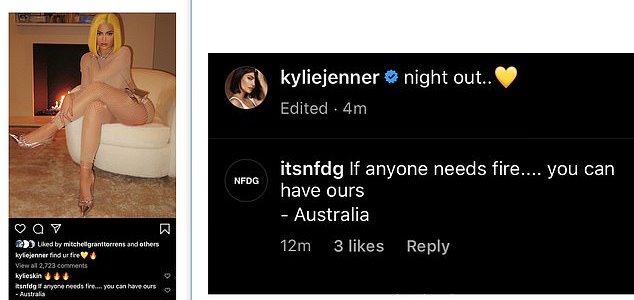 When people started commenting the disaster happening in Australia, Kylie quickly edited the caption to ‘night out’ and removed the fire emoji.