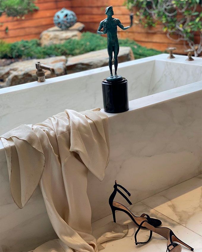 Jennifer also shared a picture of her ivory gown laying over a bathtub, along with the shoes she wore and her SAG Actor statue that she won for her role as Alex Levy in The Morning Show.