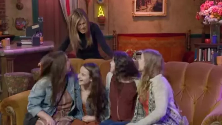 Well, fans got more than what they expected, when Jennifer Aniston – who played Rachel in the show – surprised them with her jump from behind the famous sofa during a set visit.