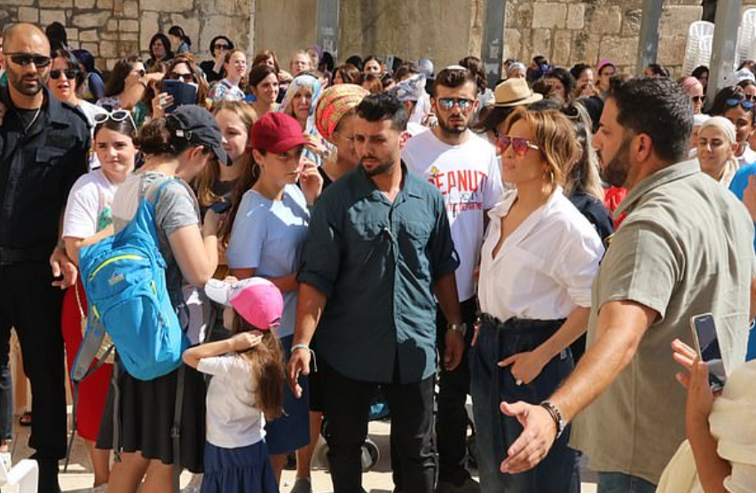 On their trip to the Wailing Wall, they also had company from the daughters of Alex Rodriguez, Benny Medina, her manager, and Lynda Lopez, her sister.