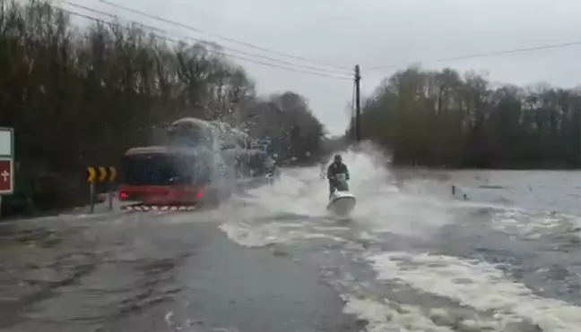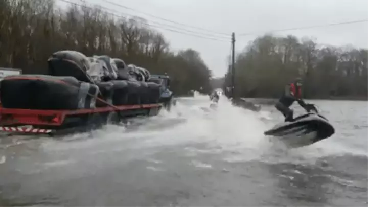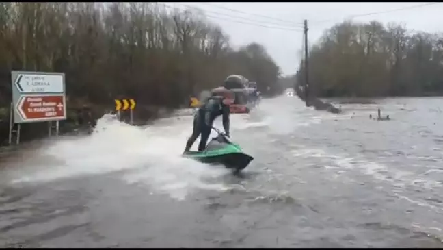 In the aftermath of the storm, some guys from Tipperary got out on their jet skis and went skiing on the roads, as if it were their very own skiing resort.