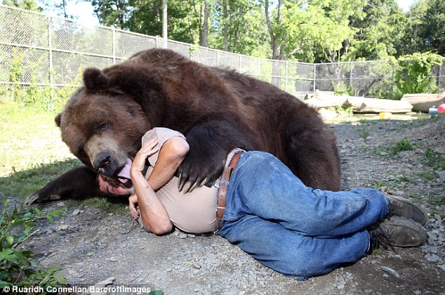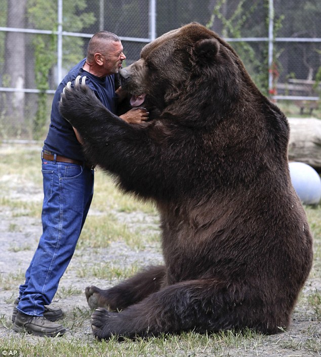 The Kowalcziks treated the giant bear as part of their family and Jimbo was often photographed playing with Jim. They could also be seen relaxing together.