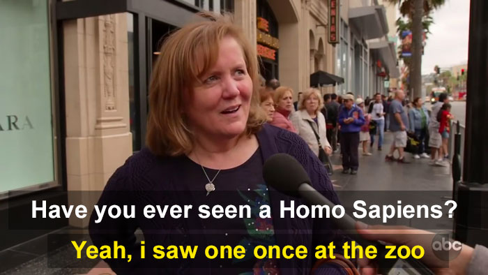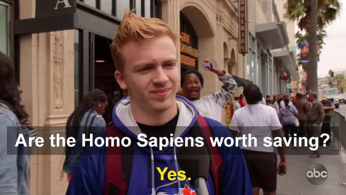 Jimmy Kimmel recently goes to the streets to find out what people thought about the current plight of the Homo Sapiens, and whether they (we) as a species really deserve to be saved. They could’ve been out for days, interviewing thousands of people to get these select few, catastrophic fails.
