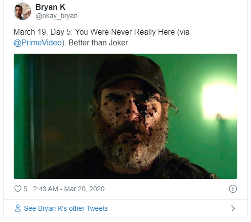 The movie, You Were Never Really Here, was released on Netflix last November but people have just discovered it now because they have excessive free time due to the lockdown.