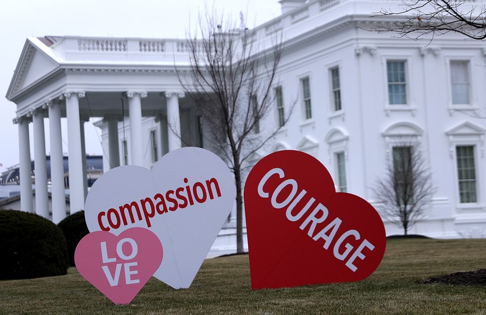 Surprising her husband on Valentine’s Day in February, the FLOTUS arranged a series of cardboard hearts, which had ‘love’, ‘courage’, and ‘compassion’ written on them, on the lawn outside the White House.