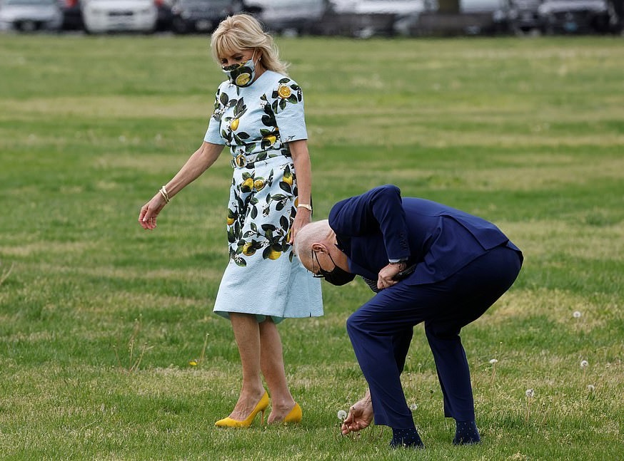 Later in early April, Jill was seen carrying a bouquet as she and Joe were taking off from the White House to celebrate Easter at Camp David.