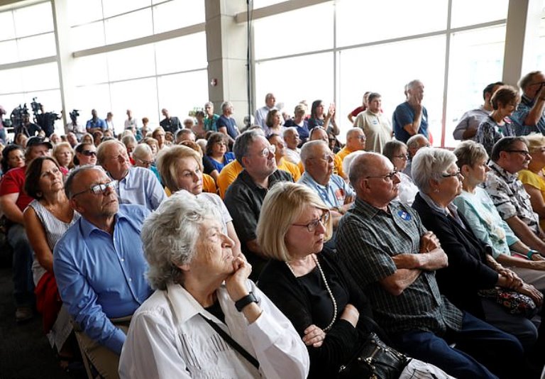 Nodding his head and cupping his ears in disagreement, Trump did an impression of Iowa voters who attended Biden’s event. He said: “No, don’t keep saying it.”