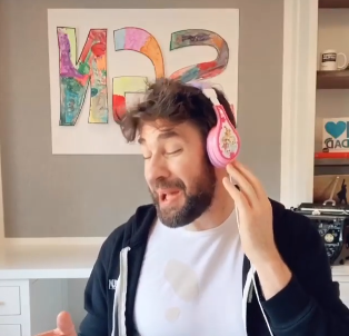 In the video, Krasinski wore a cool white t-shirt and had headphones on. The headphones probably belonged to one of her daughters. He then sang “How I wanna look”.