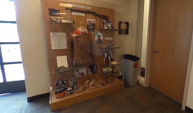 While the exhibit has been on display at the school since 2012, students have called out the ‘Rio Bravo’ actor, who died back in 1979, over his racist comments.