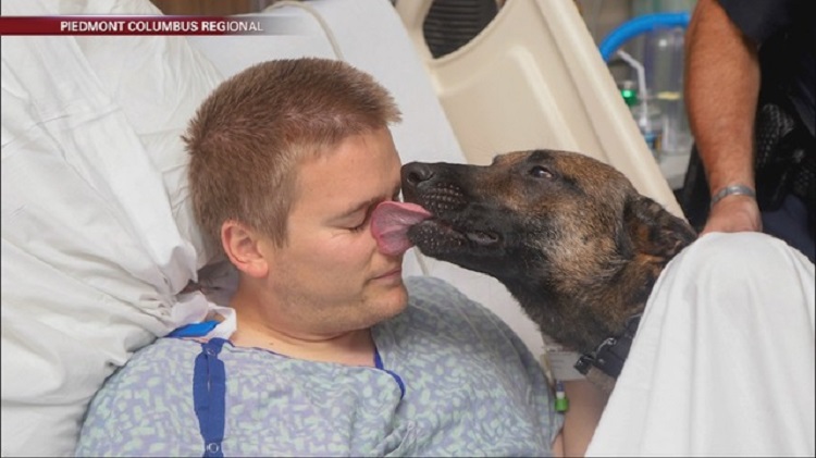 However, Sistrunk’s recovery was surely sped up when he got a special visitor: his furry partner, Leon, who went to the hospital to visit the officer, reported WRBL.