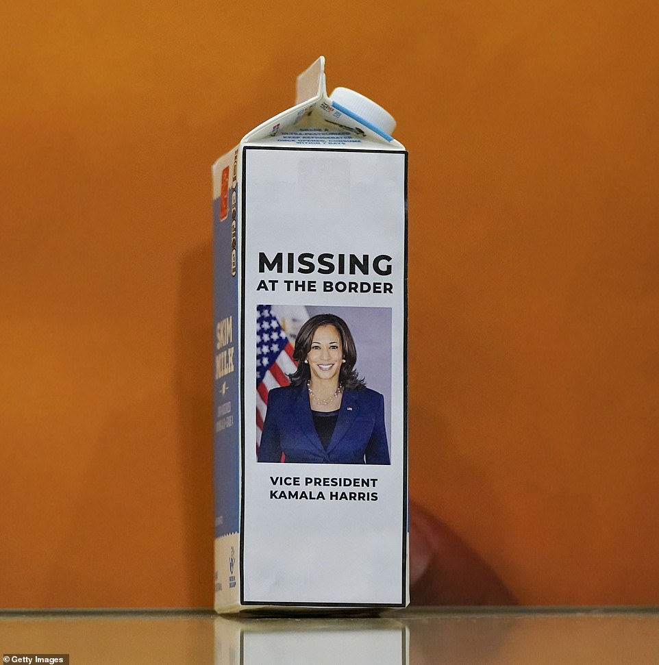 Scalise brought a milk carton prop of Vice President Harris with the caption: Missing at the border” and a picture of her attached to it.