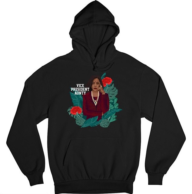 Among other products linked to Kamala Harris, Meena’s clothing brand Phenomenal offered a series of sweatshirts including the ones that read ‘VICE PRESIDENT AUNTY’ and those featuring ‘MVP’ – Madam Vice President.