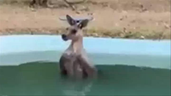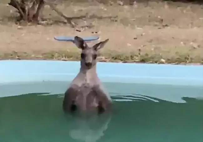A kangaroo was captured while taking a dip in a pool as the temperatures top 40C.