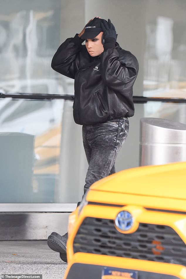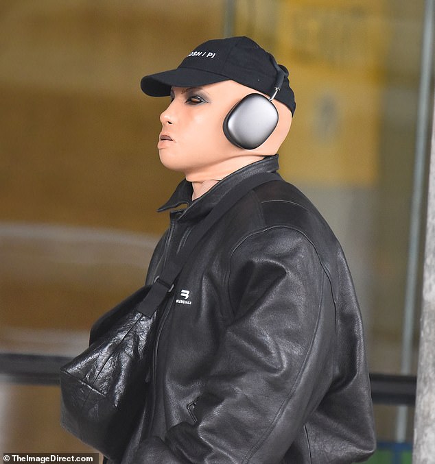 The star chose to elevate his look further by pairing the mask with a black-toned baseball cap and some slick-styled grey headphones too.