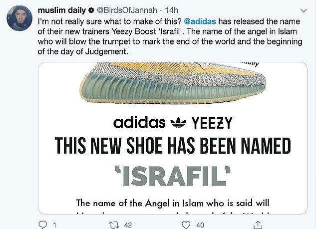 One social media user wrote: “Horrible name choice for a shoe. Israfil is one of the four archangels in Islam. Adidas – you should have done your homework. Not too late to fix this.”