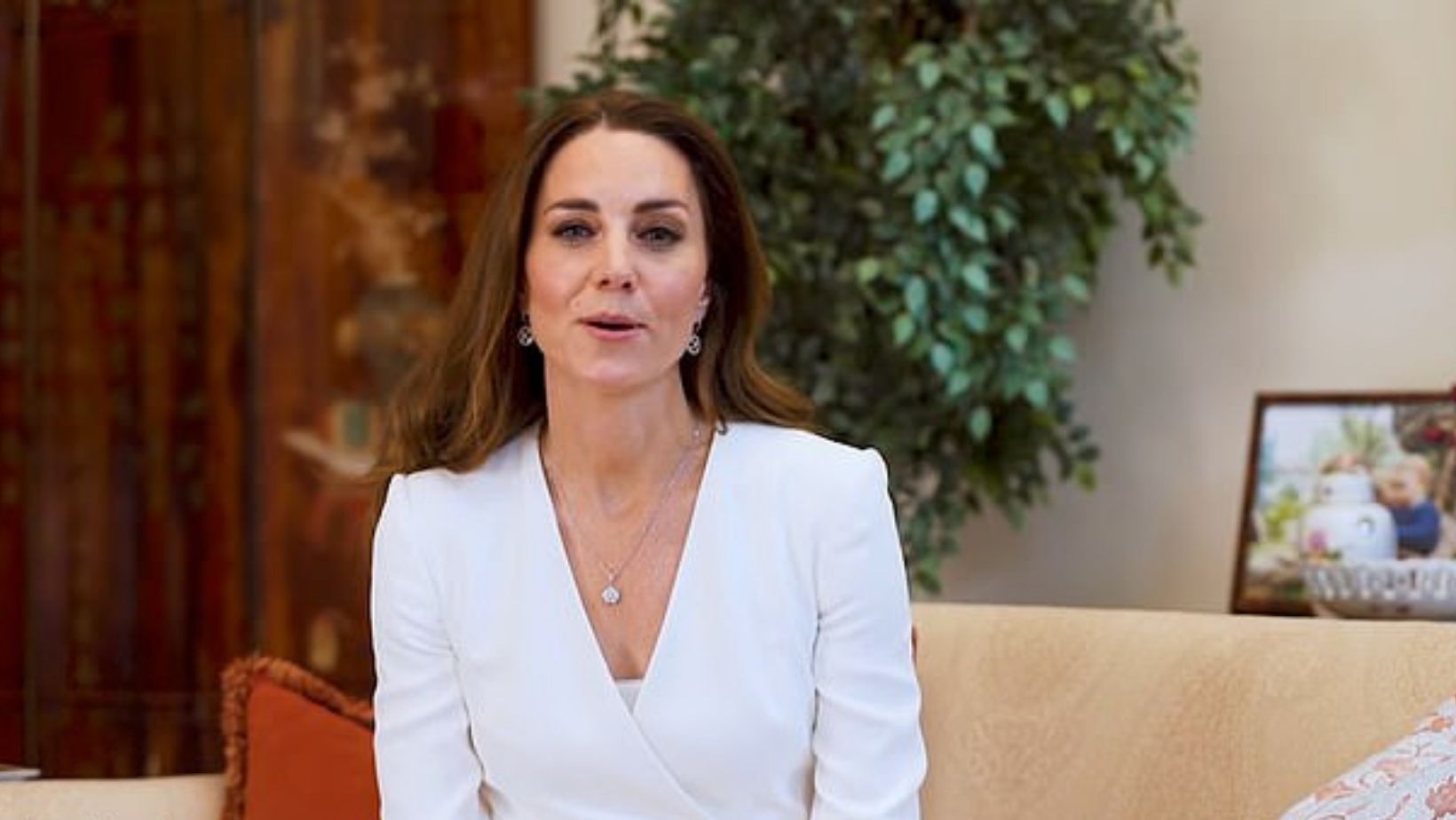 Kate Middleton, 39, looked dazzling in a new video message for nurses wearing a recycled Alexander McQueen dress paired with a $12,000 diamond necklace from Asprey, which is thought to have been a gift from Prince William on their 10th wedding anniversary this year, and Mappin & Webb “Empress” earrings.