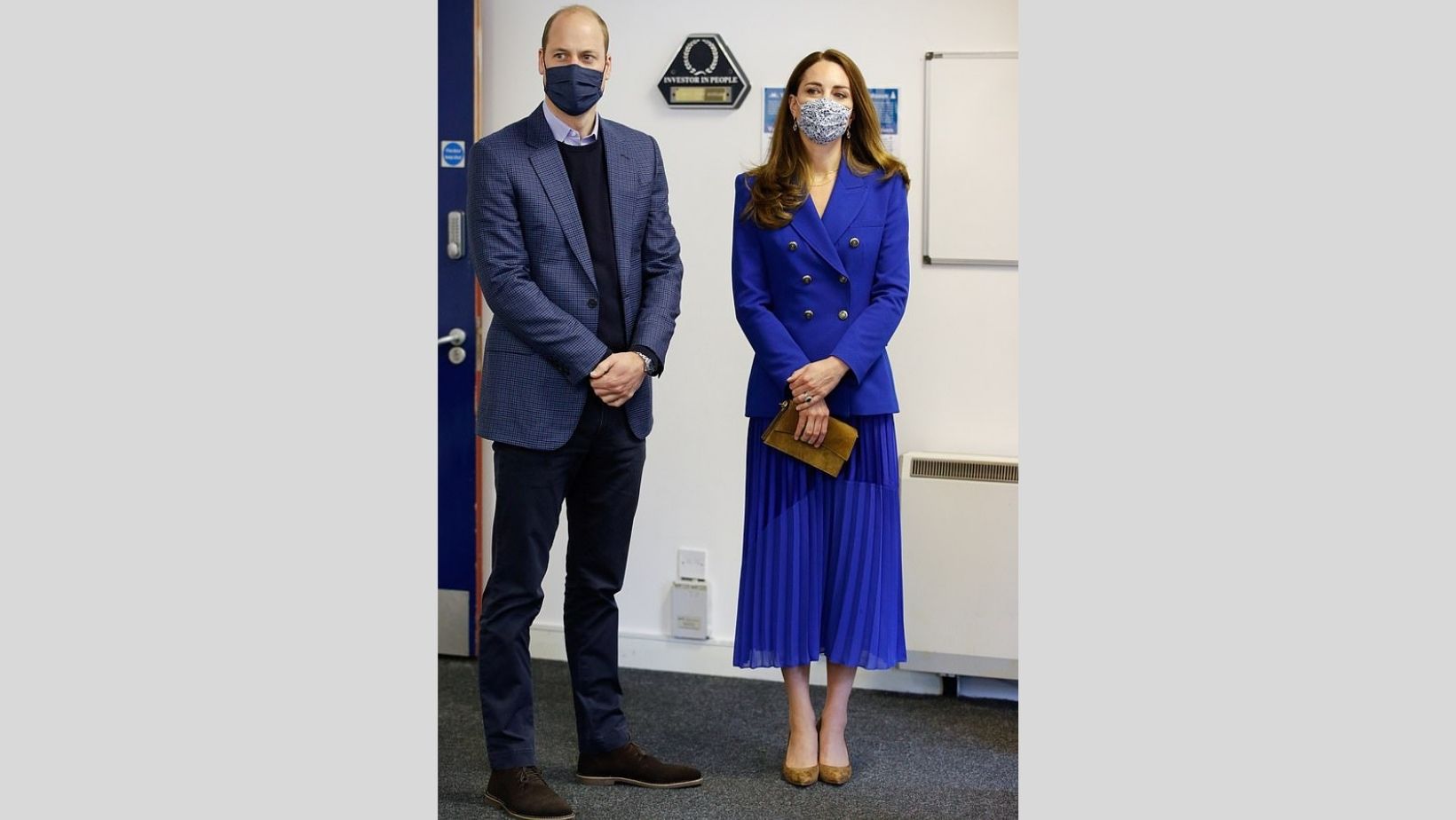 Kate was seen wearing an $85 Zara blazer and pleated midi skirt in the color of the Scottish flag for a visit to Turning Point Scotland, a social care charity in Coatbridge, North Lanarkshire.