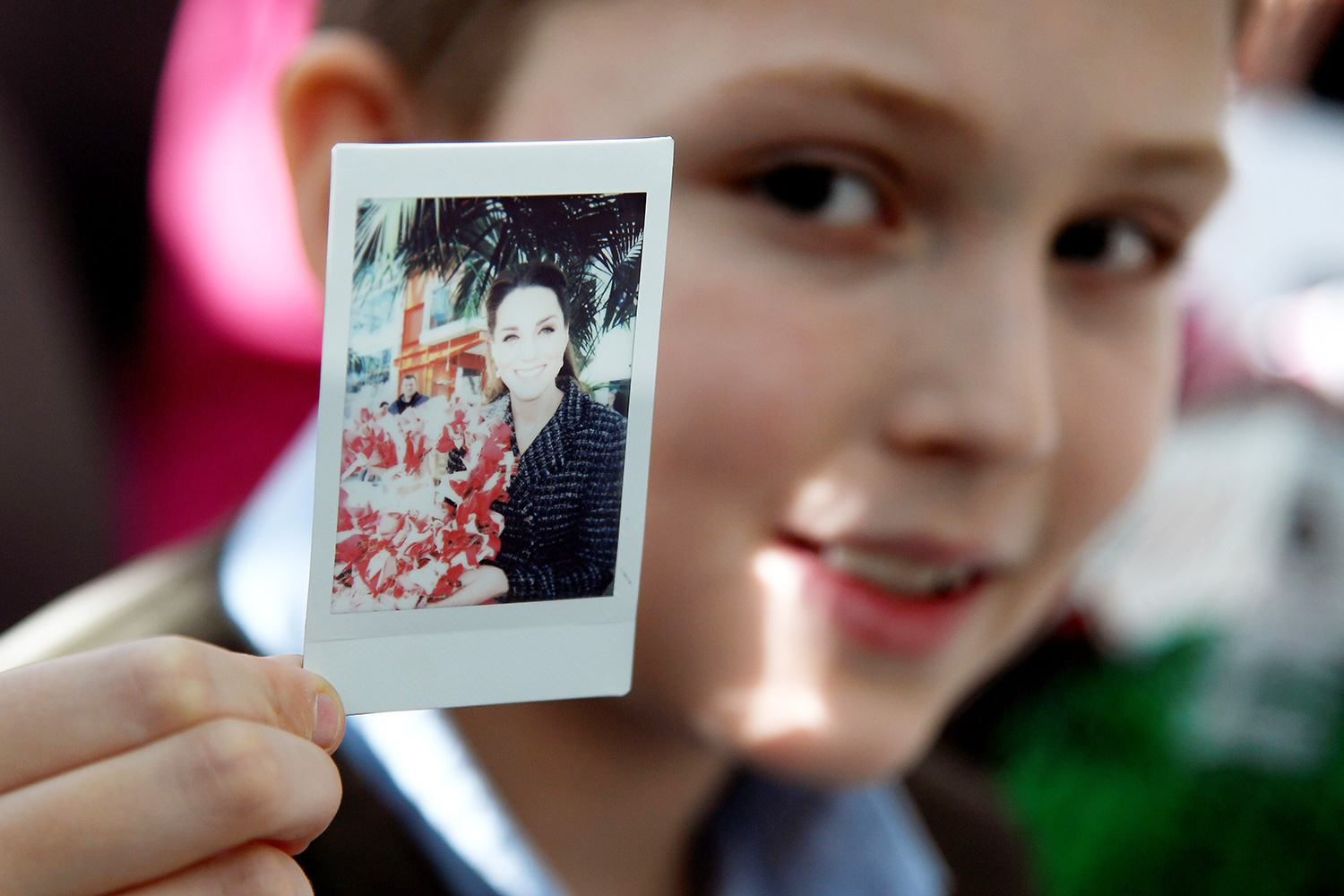 A 10-year-old heart patient Luke Wheeler-Waddison presents her colorful “rag wreaths,” he also snapped Kate’s portrait. The royal posed with her gift and give a big smile for the camera. Luke held up the keepsake polaroid, which was also admired by his 4-year-old sister Savannah.