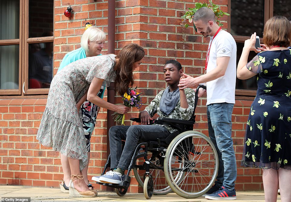 The Duchess wore a flowery dress that looked perfect for summer, a paisley print dress in shades of green and brown with floaty sleeves and a tiered hem.