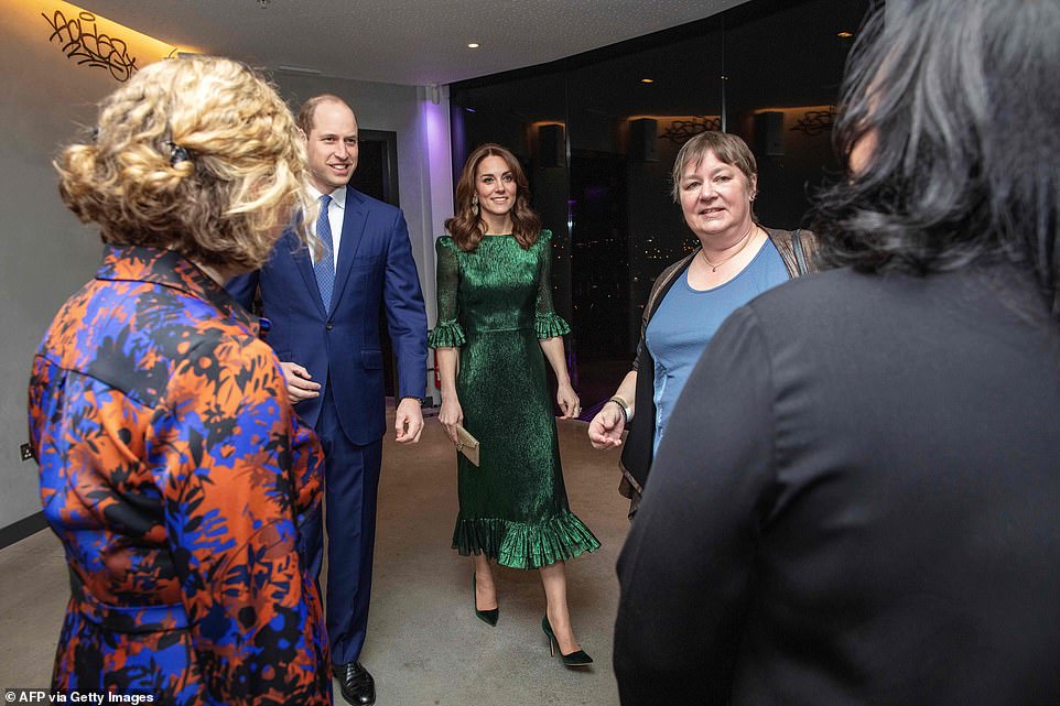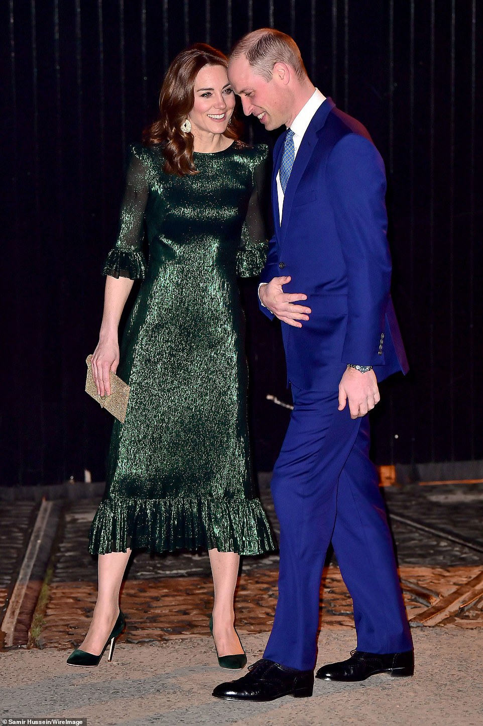 Kate chose to wear a glittering emerald gown by trendy designer The Vampire’s Wife for the first evening reception of the historic three-day visit to the country.