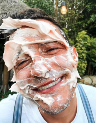 The daddy of the baby had pink shaving cream all over his face and donned a huge grin.