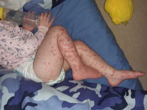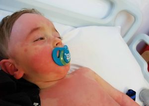 Immunoglobin transfusion had to be given to Bertie and he was to spend for five days in the hospital. ‘It was horrific seeing him like that. He didn’t have any respiratory problems but he was put in a ward on his own and he was easily the most poorly child in the hospital. His rash had started out being itchy, but it quickly put him in agony. His temperature was dangerously high and they were monitoring him round the clock.’