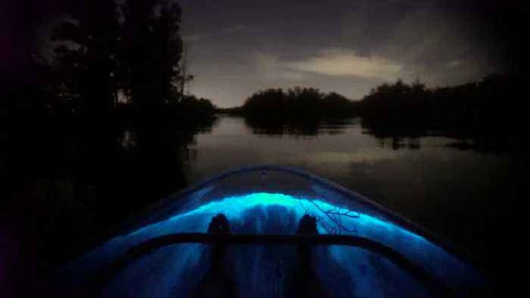 The glowing blue is caused by rare bio-luminescent plankton that activates the glow as a defense mechanism when the water is disturbed by currents or waves. But the result is an absolutely magical phenomenon that will leave you open-mouthed. But this phenomenon can only happen at night and the kayakers were lucky enough to be there when it happened.