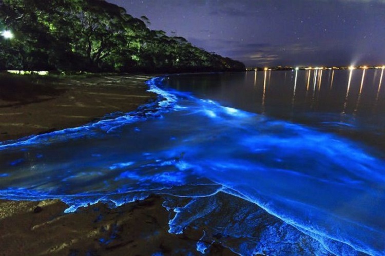 During the daytime, the phenomenon manifests as a “red tide” as the water turns deep red, brown, or orange. The lagoon where Justin encountered the phenomenon is one of the few places in the world where this display can be witnessed.