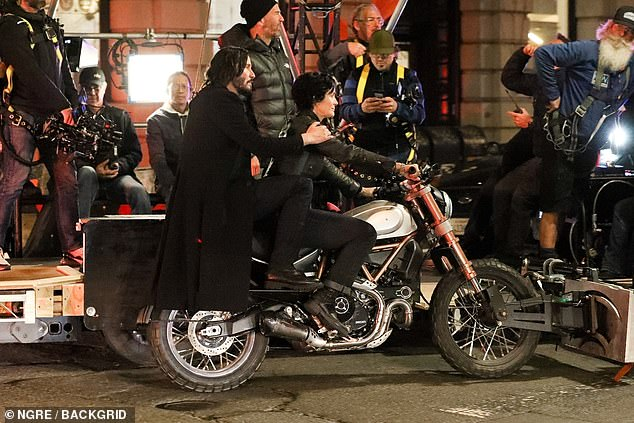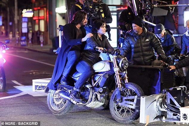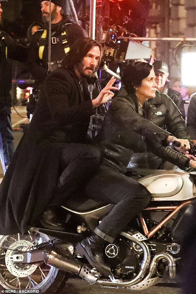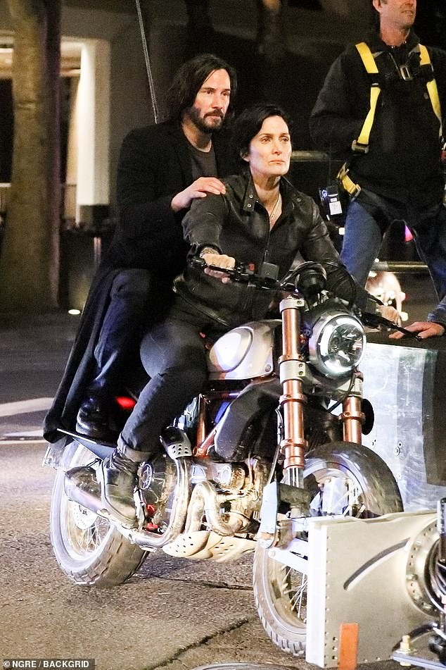 Keanu, 55, and Carrie, 52, were spotted filming thrilling scenes of the upcoming movie as they raced across the streets of San Francisco on a bike last Tuesday.