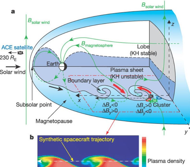 When the higher dense layer travels faster than a lower dense layer, it scoops and appears like wave formation. At this time, the boundary layer of air will be very cold. You could have noticed that when the wind blows above the water level, you can realize the wave formation.