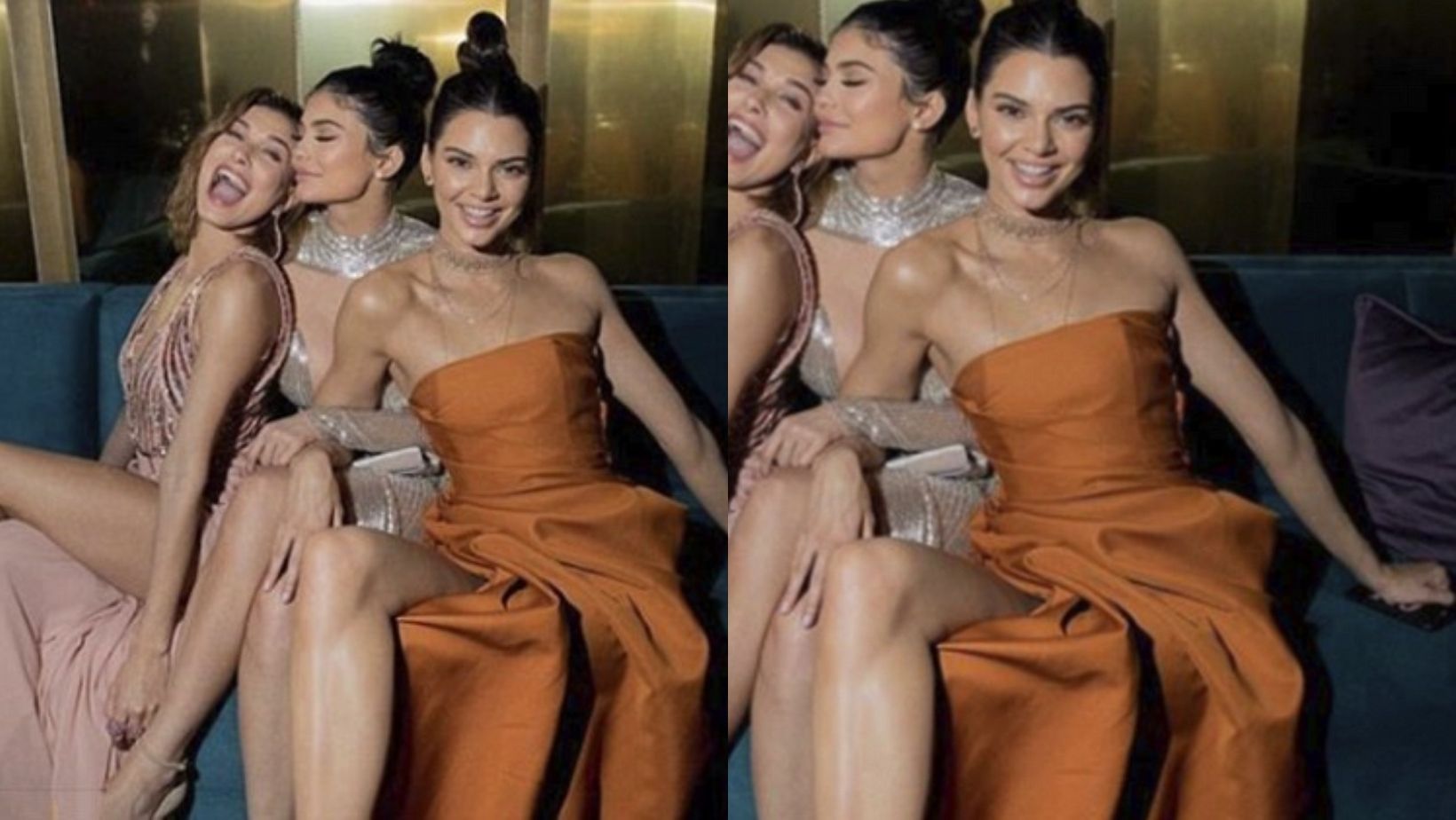 Kendall’s photo at the Golden Globes on January 8 has got everyone talking. In the cheeky snap, she poses beside her sister Kylie Jenner and their gal pal Hailey Baldwin, daughter of famed actor Stephen Baldwin.