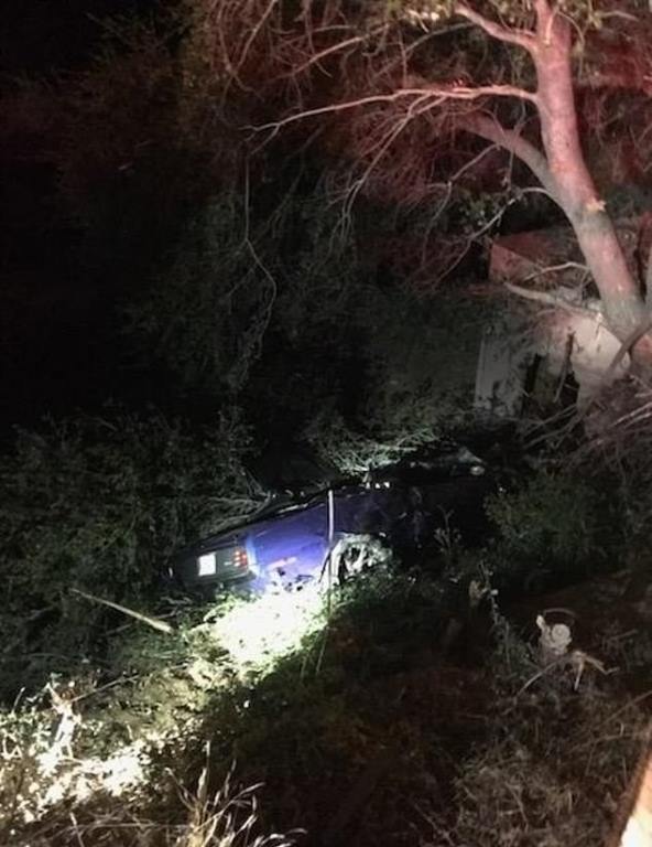 Videos online show a broken white picket fence with emergency services responding to the scene. The comedian’s vehicle careened down an embankment around 10 feet of the road and crashed into a wooden fence.