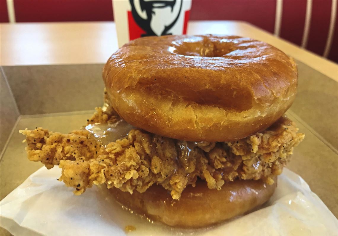 KFC has just launched a new sandwich, which combines fried chicken with donuts, at selected locations for a short period of time.