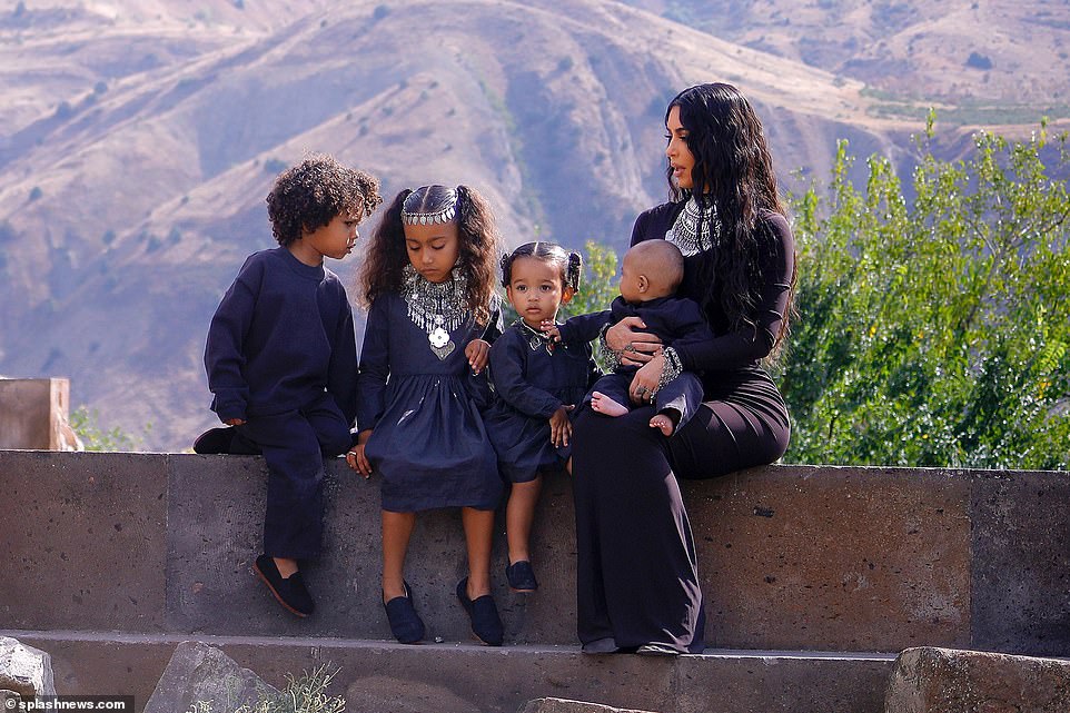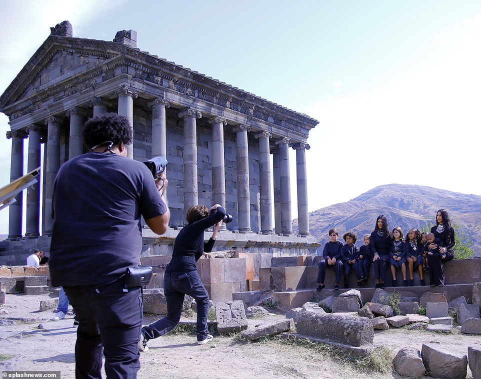 Kim, 38, got a photoshoot at the historic Temple Of Garni with her daughters North, six, Chicago, 20 months, and sons Saint, three, and Psalm, five months, on Thursday.