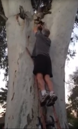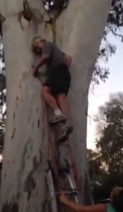 The baby Koala bear was continuously squealing while it was on the ground, calling out for the mother but couldn’t go back. So the man decided to bring two ladders and help the baby koala bear get to back to its mother.