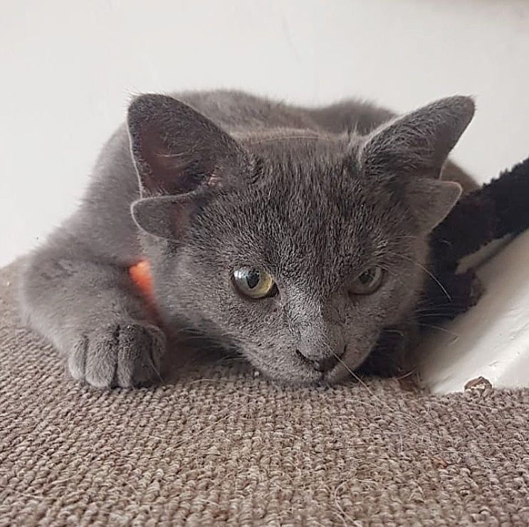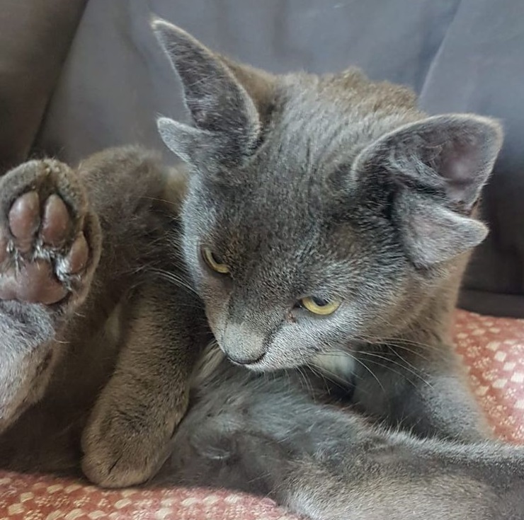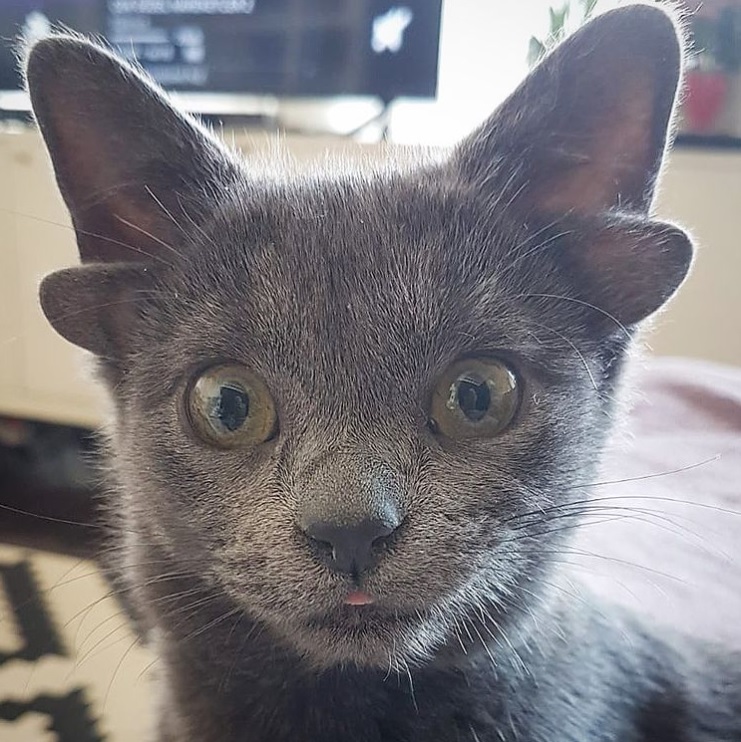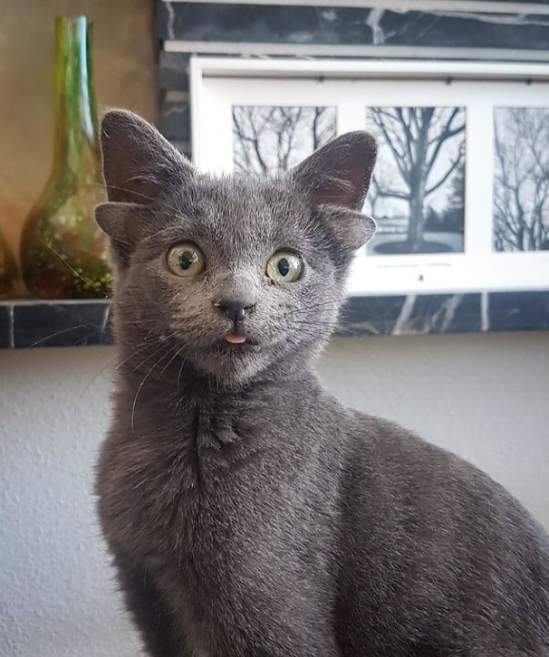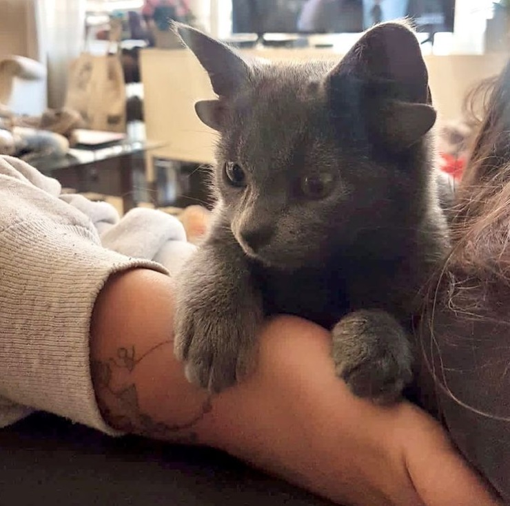Midas is a 4-month-old Russian Blue kitten who was born with a rare genetic condition that caused her to grow two sets of outer ears.