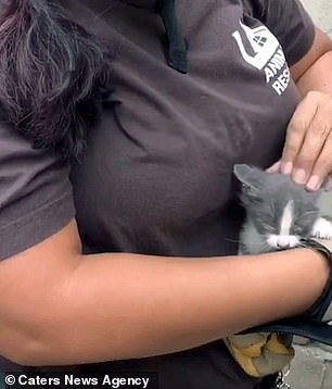 The kitten was then taken to the LA Animal Service Centre where it can be seen eating in the video.