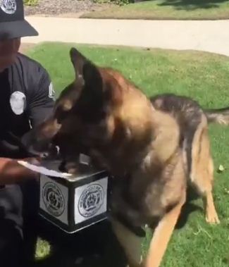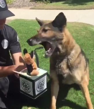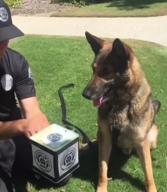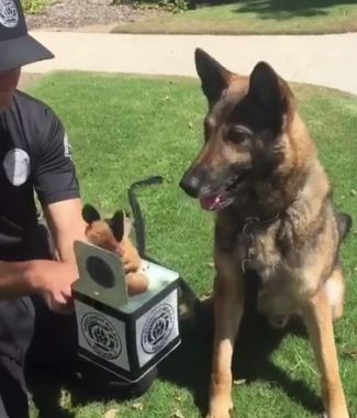 Here is a video of a K9 German Shepherd dog who is along with his trainer.