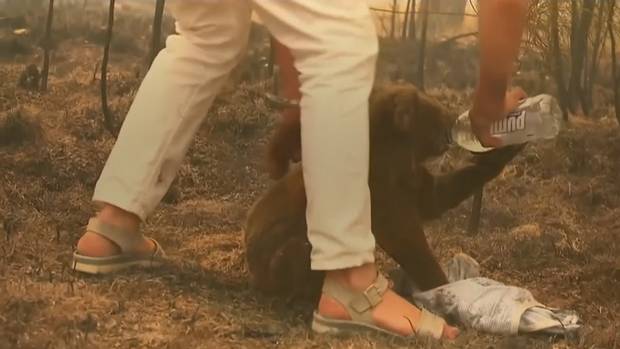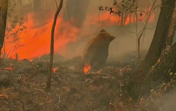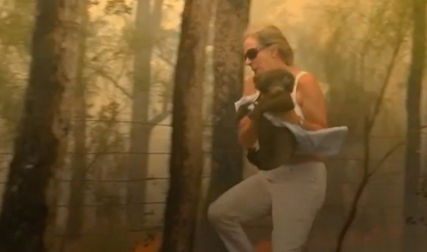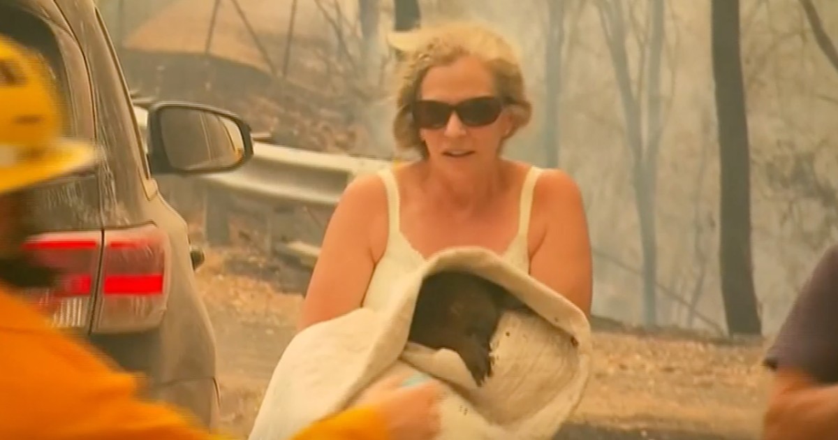 In a heroic act was recorded on the camera where a brave heart woman saves the life of a koala bear who is injured and surely cannot save himself from the fire.