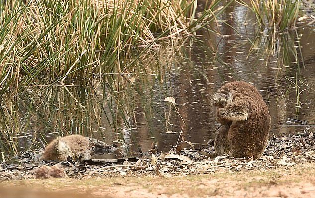 The photo, which was captured on Kangaroo Island, south of Adelaide, shows a grieving koala and its dead friend in the water.