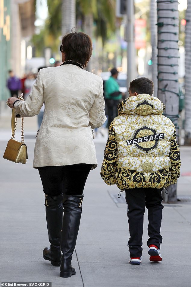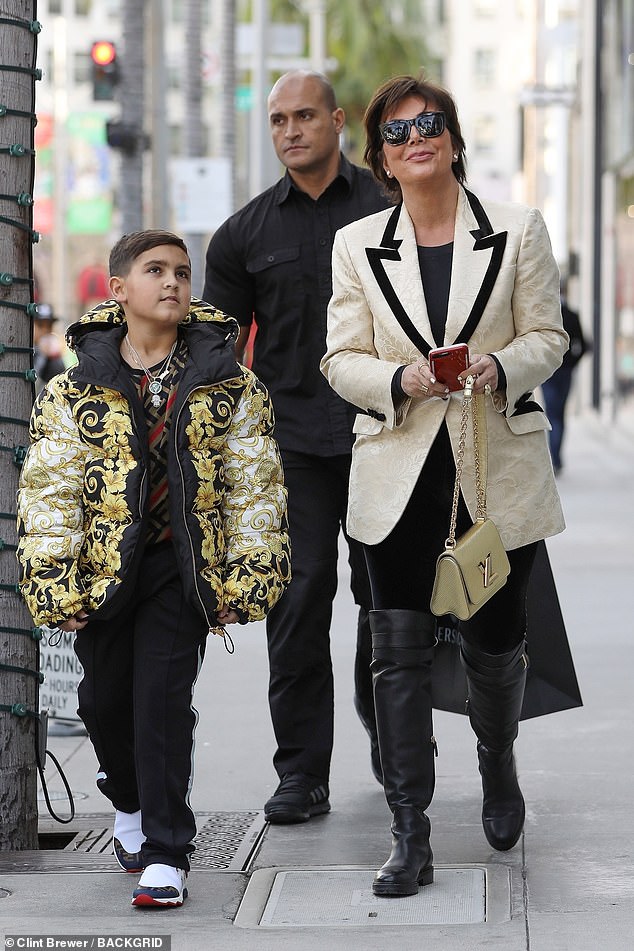 Mason and Kris were followed by a large bodyguard dressed in black, who was seen carrying a large Versace bag.