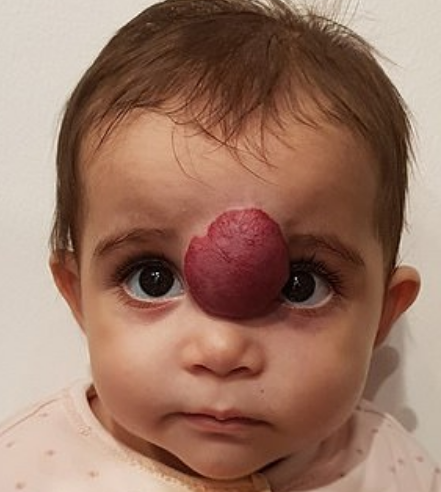 One-year-old Noor Nunez was born with a small scratch between her eyebrows that didn’t make her parents suspect about anything. For the next several months, the scratch started to darken and grow exponentially.